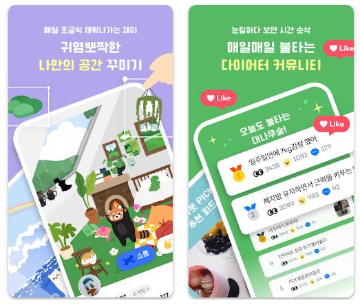 매일 미션을 완료하면서 얻은 포인트로 나만의 화면을 꾸미는 기능도 있어 동기 부여 및 지속적인 참여를 유도합니다.