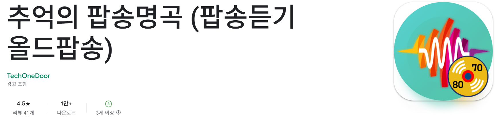구글 플레이 스토어에서 “추억의 팝송명곡”을 검색 후 설치 버튼을 누르면 간단히 설치가 가능합니다.