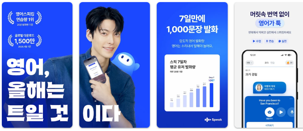 - 안드로이드: 구글 플레이스토어에서 “스픽 (Speak): 영어회화, 스피킹, 발음”으로 검색하여 설치 가능합니다.