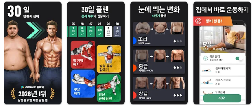 - Android: Google Play 스토어에서 “뱃살 빼기 - 30일만에 체중 감량” 검색 후 설치할 수 있습니다.