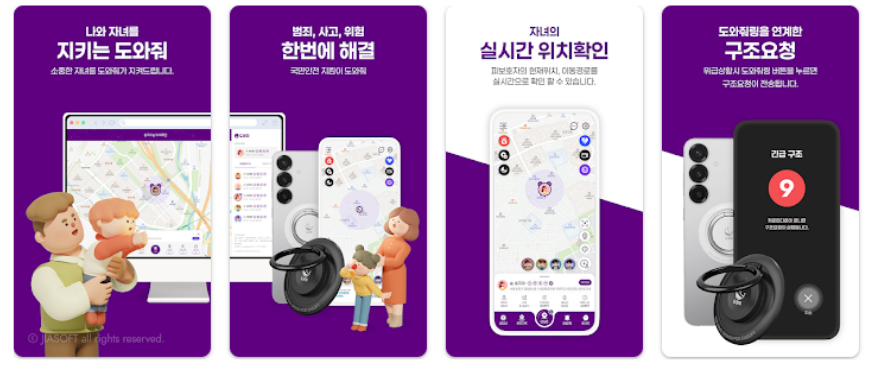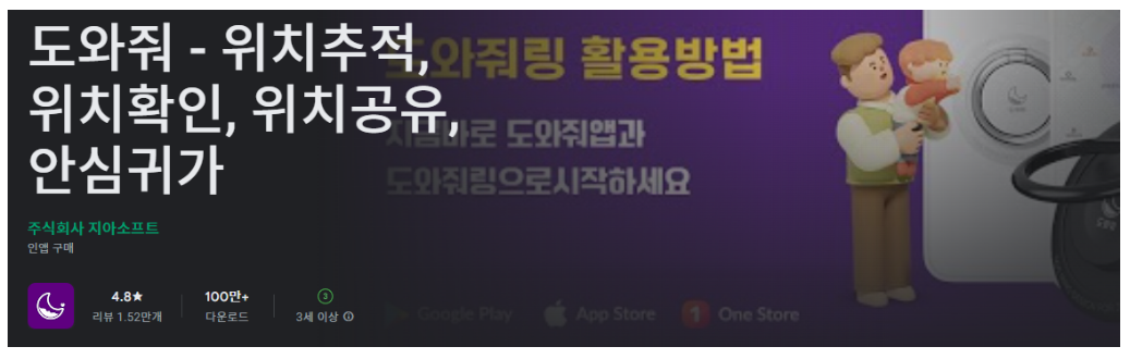 도와줘는 주식회사 지아소프트가 개발했으며, Google Play 스토어 기준으로 백만 이상 설치된 인기 앱입니다. 가족의 안전을 관리하는 목적에 맞춰 설계된 기능들이 포함되어 있어 특히 자녀나 노년층의 위치 확인, 응급 상황 대응에 유용한 도구로 평가받고 있습니다.