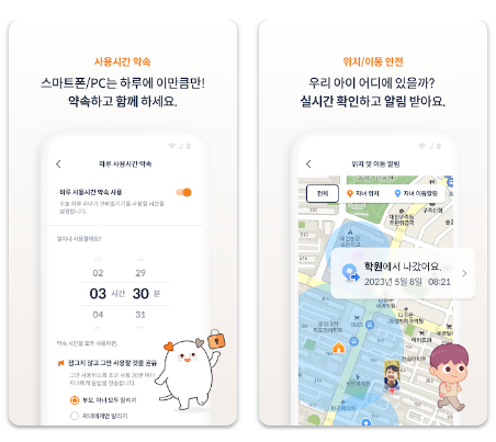 설치 과정은 간단하며 보호자와 자녀 스마트폰에 각각 앱을 설치하고 계정을 연동하면 바로 사용 가능합니다.