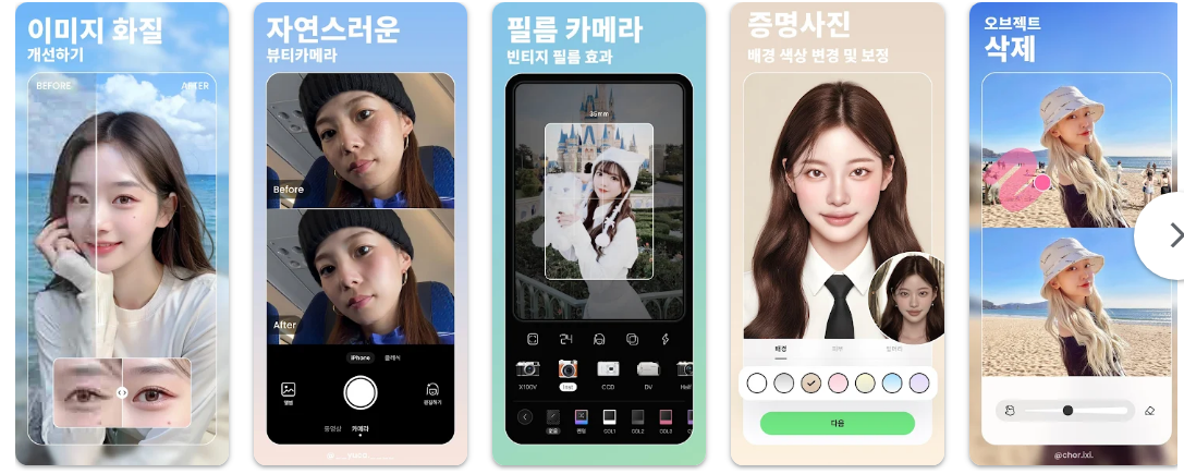 AI 기술을 활용해 얼굴 보정과 사진 편집의 한계를 넓힌 사용자 친화적 앱입니다. 누구나 전문가 수준의 효과를 사진에 쉽게 적용하도록 설계되었습니다.