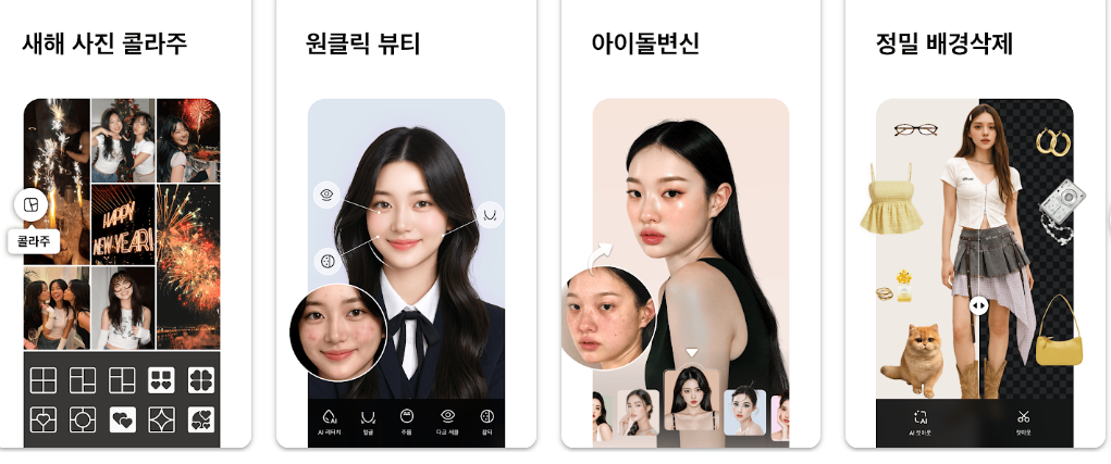 2억 명 이상이 사용하는 고화질 카메라 앱으로 AI 프로필과 AR 메이크업이 대표적입니다. 트렌디한 스티커와 필터로 일상을 특별하게 기록하도록 돕습니다.