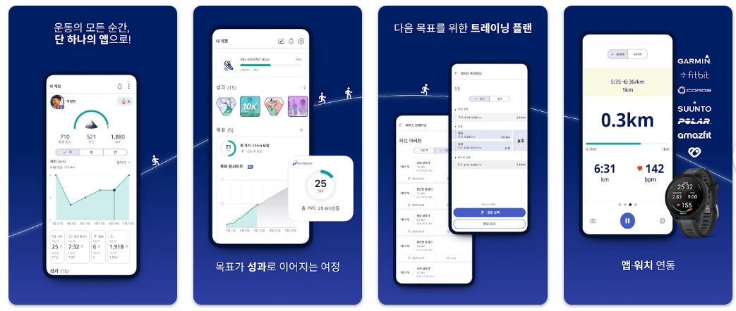아식스에서 제공하는 이 앱은 초보자부터 숙련된 마라톤 참가자까지 모든 수준의 러너를 지원하는 트레이닝 도구입니다. 사용자의 운동 활동을 기록하고 관리하며 전문가가 설계한 트레이닝 플랜을 통해 목표를 달성할 수 있도록 돕는 역할을 수행합니다.