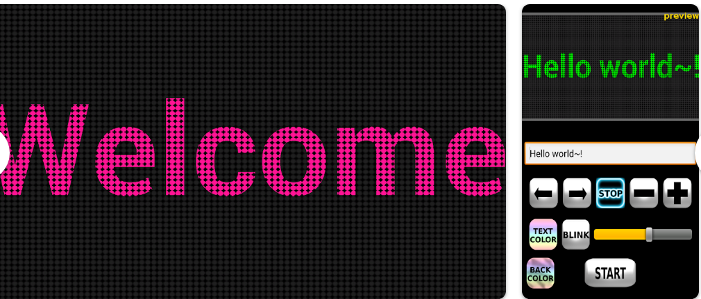 글자 이동 방향이나 속도를 세밀하게 조정할 수 있는 것이 특징입니다. 전광판 설정을 실시간 미리보기로 확인하며 수정할 수 있는 인터페이스를 갖췄습니다.