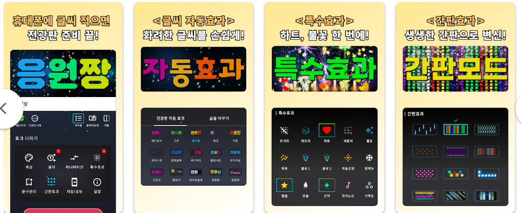 - 특수 효과: 별빛이나 하트 등 15가지 이상의 배경 효과를 문구에 적용합니다.