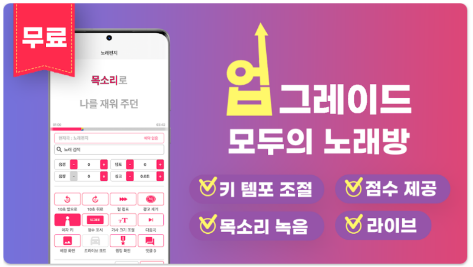 - 최신 반주 지원: 매일 업데이트되는 신곡 반주 제공