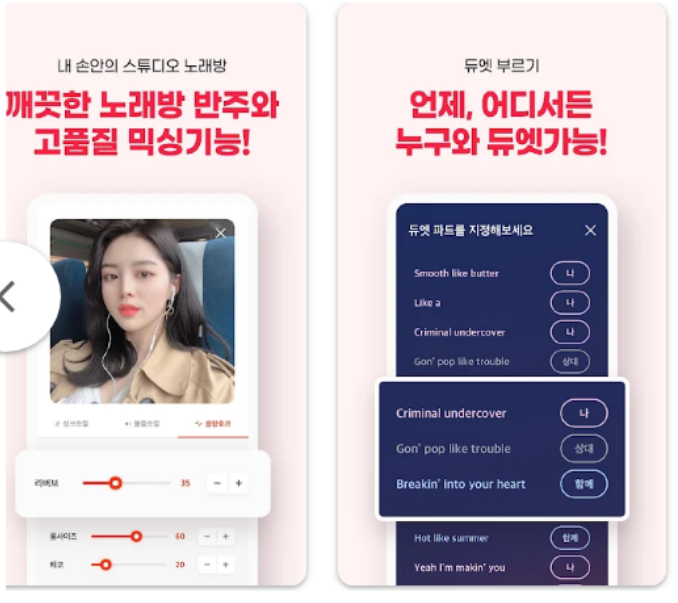 - 아티스트와 듀엣: 원곡 가수와 함께하는 듀엣 기능 지원