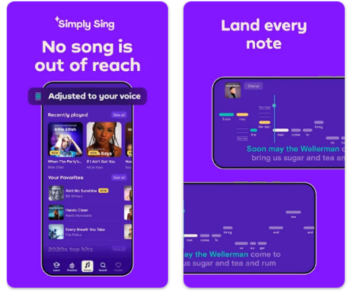 Simply Sing은 사용자가 편안하게 노래를 부를 수 있도록 돕는 맞춤형 노래방 앱입니다. 자동 피치 조정 기능을 통해 음역대에 맞는 노래를 제공하며, 고음을 부를 때도 자연스럽게 소화할 수 있도록 지원합니다.